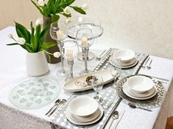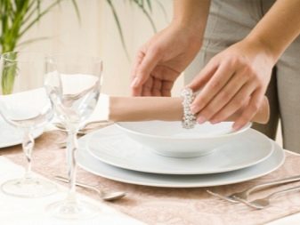 Es ist notwendig, das Geschirr sorgfältig und langsam anzuordnen, da es aus zerbrechlichem Material hergestellt wird. Orte zum Servieren von Tellern sollten sehr sorgfältig ausgewählt und auf die gleiche Linie gestellt werden, damit sich die Gäste während der Feier nicht gegenseitig stören.