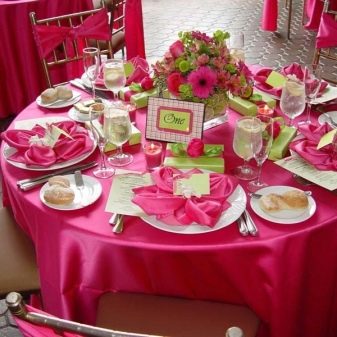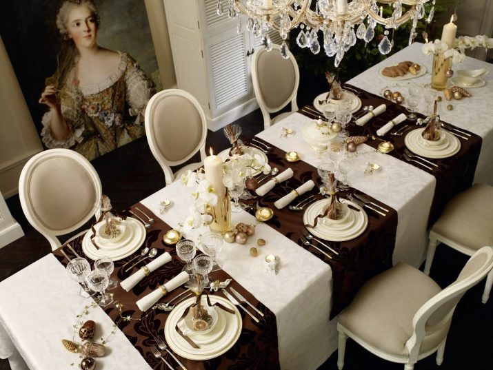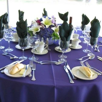 Eine Tischdecke ist die Basis für jeden festlichen Tisch. Um ein wichtiges Ereignis zu markieren, In keinem Fall können Sie Wachstuch verwenden, gegen das selbst die luxuriösesten Gerichte nicht raffiniert aussehen, sondern im Gegenteil. Wenn Sie den Ton der Tischdecke wählen, müssen Sie vom Innenraum und dem Anlass der Feier ausgehen. Der Stoff muss unbedingt harmonisch in die Raumgestaltung passen.