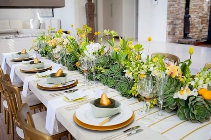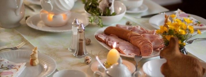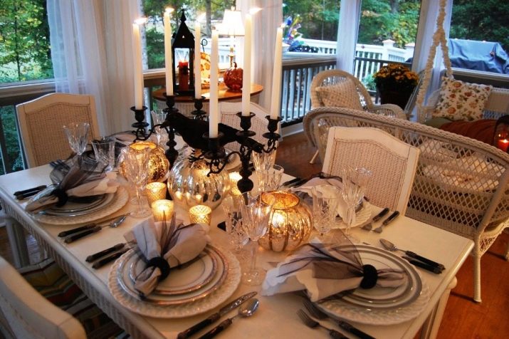 Für eine thematische Feier können Sie verschiedene dekorative Elemente verwenden. Normalerweise sind dies Blumensträuße von Pflanzen oder Kerzen in schönen Leuchtern. Vergessen Sie auch hier nicht die Kombination von Farbe mit Tischdecke, Geschirr, Servietten. Die Hauptregel des Dekors ist seine Mäßigung, weil es sehr einfach ist, es auf einem Tisch mit Dekoration zu übertreiben