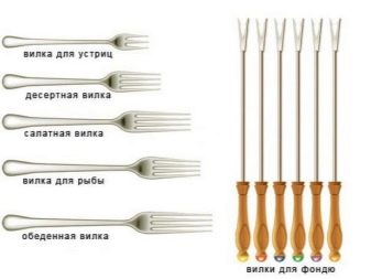 Es gibt Fisch, Fleisch, Dessertgabeln usw. Jeder von ihnen unterscheidet sich vom anderen in der Anzahl der Zähne sowie in der Größe: