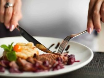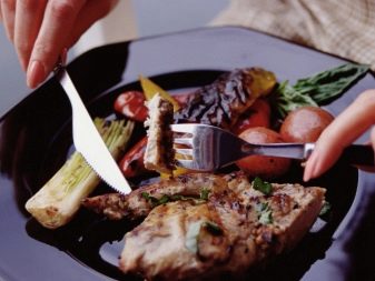 - Ein kleines Stück Fleisch, zum Beispiel, muss richtig in die Nelken gehackt werden. Der Zeigefinger der linken Hand sollte fest auf den Besteckgriff gedrückt und leicht gedrückt werden. Dann schicken Sie das Essen vorsichtig in Ihren Mund.