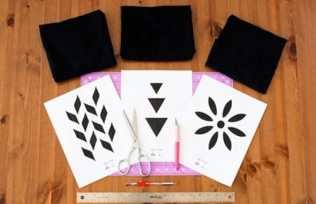 Präparierte Verzierung. Tragen Sie eine Schablone auf den Stoff auf und schneiden Sie das Muster mit kleinen Kerben. Das Ergebnis sieht besonders bei hellen Dingen beeindruckend aus.