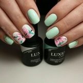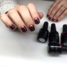 - Nach Angaben der Anwender haftet die Beschichtung sehr gut und kann länger als 2 Wochen in ausgezeichnetem Aussehen auf den Nägeln verbleiben. In diesem Fall reißt das Gel nicht, es treten keine Risse und Kratzer auf. Der faire Sex kann ruhig seinen Geschäften nachgehen, ohne sich um die Qualität der Maniküre sorgen zu müssen.