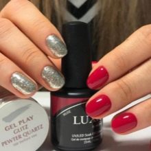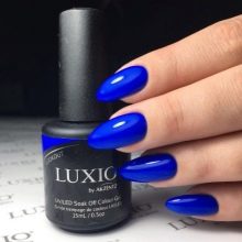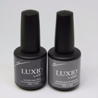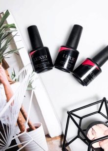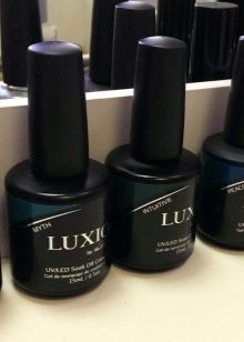 - Die Marke Luxio ist ein echtes Gel, das eine Vielzahl von Farbpigmenten enthält. Damit können Sie nicht nur im Salon, sondern auch zu Hause hochwertige Maniküre machen. Es unterscheidet sich von gewöhnlicher Gelpolitur in Abwesenheit von Formaldehyd und Lösungsmittel und beeinträchtigt daher die Nägel nicht.