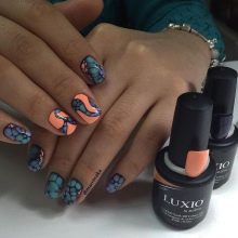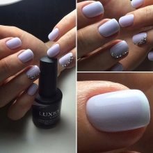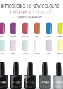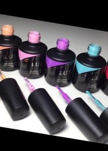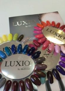 - Die Marke Luxio bietet eine Farbpalette für jeden Geschmack, strenge Damen werden Pastellfarben mögen und stilvolle und extravagante Mädchen werden von hellen und farbenfrohen Farbtönen begeistert sein. Sie können als Optionen mit Glitzer und durchscheinenden Gelen wählen. Die Farben sind gesättigt, sie sehen sehr schön aus, gleichmäßig aufgetragen und auf mysteriöse Weise glänzend.