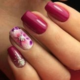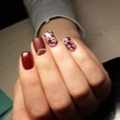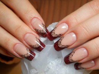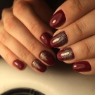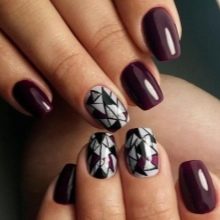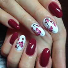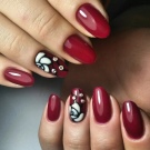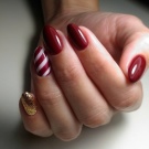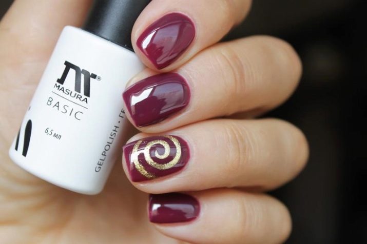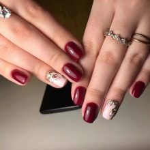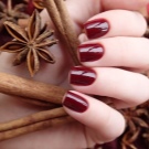 Um ein Dekor in Burgundertönen zu kreieren, gibt es einen kleinen Life-Hack. Wenn dieser Farbton der Hauptton ist, kann keine transparente Gelbasis aufgetragen werden. Es ist besser, farbigen Lack in mehreren Schichten zu verwenden. So wird die Farbe gesättigter. Es ist wichtig, jede nachfolgende Schicht unter der Lampe sorgfältig zu trocknen. Nach dem Auftragen der Basis, dem endgültigen Dekor und dem Trocknen muss die endgültige Verstärkungsbeschichtung verwendet werden. Dies geschieht für eine längere Anwendung der Maniküre und schafft zusätzlichen Glanz.