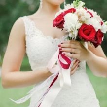 Darüber hinaus wird diese Farbe für eine Hochzeitsmaniküre gewählt. Für Liebhaber von natürlichen Tönen sind Nägel im Schatten von Marsala einfach ein Fund vor dem Hintergrund eines schneeweißen Kleides. Für die alltägliche Maniküre können Sie diese Farbe nicht nur als monophone Beschichtung wählen, sondern auch als Teil eines komplexen Dekors, das mit einer kleinen Menge goldener oder silberner Pailletten an mehreren Fingern verziert ist.