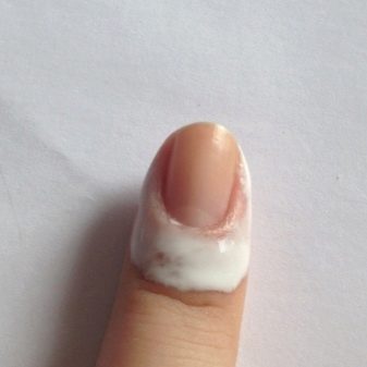 Sie müssen auch daran denken, dass farbiger Nagellack, insbesondere in leuchtenden Farben, auf der Haut um den Nagel die Maniküre nicht dekoriert. Um diese Probleme zu vermeiden, ist es vor dem Auftragen der Beschichtung besser, den periungualen Bereich großzügig mit Creme zu schmieren. Selbst wenn das Dekor die Grenzen der Arbeitsfläche überschreitet, kann es in diesem Fall leicht mit einem Wattepad entfernt werden.