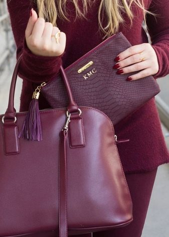 Die Kombination von Braun und Burgund ermöglicht es Ihnen, die Farbe von Marsala zu erhalten. Dieser Farbton ist sehr vielseitig und lässt sich mit jeder Farbe kombinieren. Deshalb geht die Mode für ihn von Saison zu Saison.
