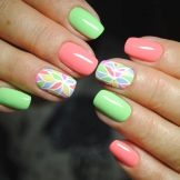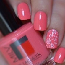Es gibt viele Ideen für die Anwendung von Korallenfarben in der Maniküre. Man muss nur Fantasie zeigen und sich ein einzigartiges Design oder Muster einfallen lassen. Der Korallenton passt ausnahmslos zu jedem, Sie müssen nur mit seinen Farben spielen.