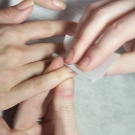- Ein fusselfreies Tuch sollte in einer Entfettungslotion angefeuchtet werden. Wischen Sie Ihre Nägel damit ab.