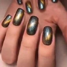 Um eine beliebte Maniküre namens „Katzenauge“ herzustellen, müssen Lacke verwendet werden, die mikroskopisch kleine Metallpartikel enthalten. Durch sie entstehen schöne Überläufe und Muster auf den Nägeln. Ihre Struktur ähnelt Edelsteinen, von denen der Name stammt.