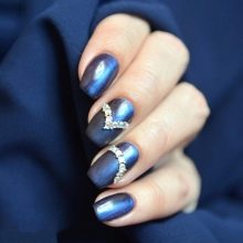 Diese Maniküre mit Strassmalerei ist perfekt für einen Urlaub oder einen Galaabend. Im Alltag werden solche Nägel jeden Abend diskutiert.