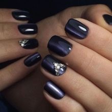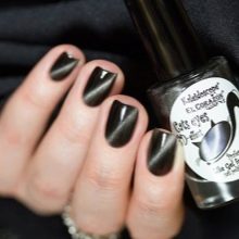 Um eine solche Lösung zu implementieren, werden nur Gelpolitur und ein Magnet benötigt. Eine solche Maniküre sieht trotz der Leichtigkeit und Einfachheit der Ausführung aufgrund ihrer Technologie stilvoll und rentabel aus.