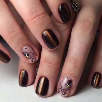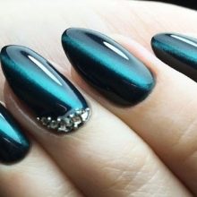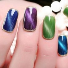 Es gibt viele Ideen für die Gestaltung eines Maniküre-Designs mit Lack „Katzenauge“. Dies kann nicht nur in Schönheitssalons, sondern auch zu Hause durchgeführt werden. Mit Hilfe verschiedener zusätzlicher Materialien können Sie eine einzigartige Maniküre diversifizieren und kreieren. Zu den Lacken gehört eine riesige Farbpalette, die für jeden Anlass geeignet ist.