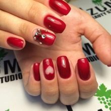 Diese Option wird normalerweise im Zusammenhang mit einem Urlaub erstellt. Zu diesem Zweck ist es ratsam, thematische Gemälde mit verschiedenen Lacken zu verwenden, bei denen Strasssteine, Perlen oder Glitzer verwendet werden. Auch in Geschäften finden Sie einzelne Schablonen oder Aufkleber auf den Nägeln, die als Ergänzung zum Design verwendet werden.