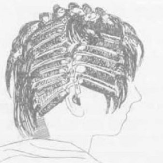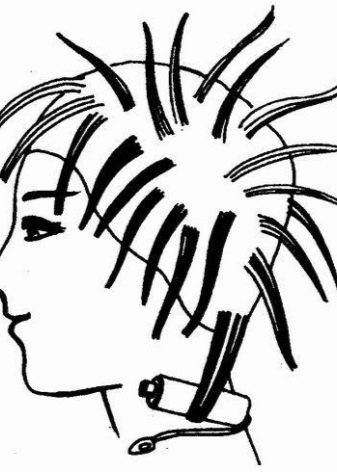 Die erste Stufe beginnt im Nacken und wickelt sich weiter in den Hinterhauptbereich ein. Vor ihnen werden Stränge in Richtung der Krone des Kopfes gewickelt. Die restlichen Styler werden so platziert, dass sie sich allmählich zum Hinterkopf bewegen.