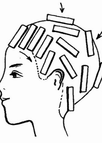- Der nächste Schritt wird sein Lockenwickler mit Haaren umwickeln. Das Schönste ist eine Welle mit horizontaler Werbung, bei der die Styler in Zonen platziert werden: von der Stirn bis zum Hinterkopf und an den Seiten. In diesem Fall sollte, wenn die Chemie bei Keuchhusten durchgeführt wird, das Wickeln an den Spitzen beginnen und den Styler in der Nähe der Wurzeln fixieren. Die Stränge müssen gleich breit sein, nicht mehr als 5 mm.