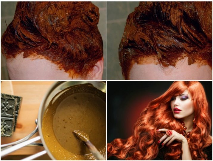 Wenn Henna hinzugefügt wird Kaffee oder KakaoDies verleiht dem Haar eine braune oder tiefrote Tönung. Aufgrund des Vorhandenseins von Kaffee ist es möglich, den Effekt der Verwendung von Farbe für eine Weile zu verlängern und das nächste Bild zu verzögern. Ein ähnliches Farbergebnis kann mit Basma und Henna erzielt werden. Jede Version der Zusammensetzung sollte nicht länger als eine Stunde auf dem Haar bleiben.