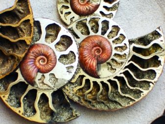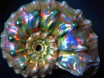 Oft kommt es zu Verwechslungen zwischen Ammonit und Ammolyte, wobei letzterer eine Art Ammonit ist. Um es zu erhalten, sind besondere Bedingungen und viel Zeit erforderlich. Es ist also richtig, Ammolithstein zu nennen, der durch die Mineralisierung von Ammonitschalen in der Gesteinszusammensetzung entstanden ist. Was aber absolut alle Ammonitensorten vereint, ist die Perlenbeschichtung. Es wird sowohl im Inneren als auch im Äußeren des Steins vorhanden sein.