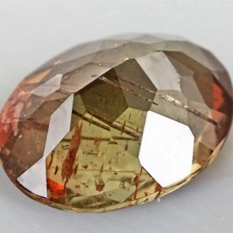 Wenn Sie Skeptiker und Materialist sind, interessieren Sie sich vor allem für die Eigenschaften von Stein, die erklärt und bewertet werden können. Die Formel des reinen Minerals lautet Aluminiumsilikat, transparenter Stein - Al2SiO5. Aufgrund seiner physikalischen und chemischen Parameter ist der Stein auch schwierig. Das Farbschema ist sehr reich an Schattierungen: Grün, Gelb, Rot, Braun, Grau, Rötlich, Braun. Farblose Steine sind sehr selten. Mineralische Eigenschaften: