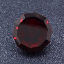 Der facettierte Rubin ist hart und sehr schwer. Seine regelmäßige glatte Form hat eine hohe Lichtdurchlässigkeit. Der Edelstein weist keine äußeren oder inneren Mängel auf. In der Mitte des Minerals gibt es keine Risse oder Hohlräume.