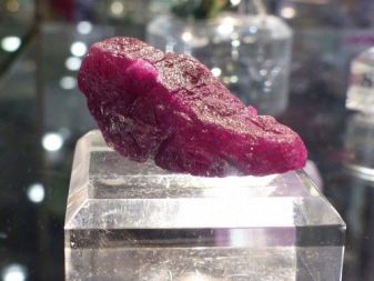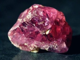Nach der Verarbeitung erhält der Edelstein einen dunkelroten Farbton, wird transparent und glatt. Korund gehört zur Ausschlussgruppe: Polierter Stein hat eine zart rosa Tönung mit violetten Farbtönen.