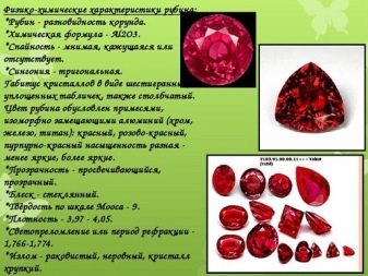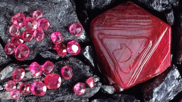 Rubine sind wunderschöne natürliche blutrote Mineralien. Eisenionen verleihen dem Edelstein einen reichen Farbton. Kristallgrößen erreichen 400 Karat und ihre physikalischen Eigenschaften lassen die Preise auf dem riesigen Schmuckmarkt buchstäblich "steigen". Es gibt viele Edelsteinsorten, die sich in Struktur und Schattierung unterscheiden.
