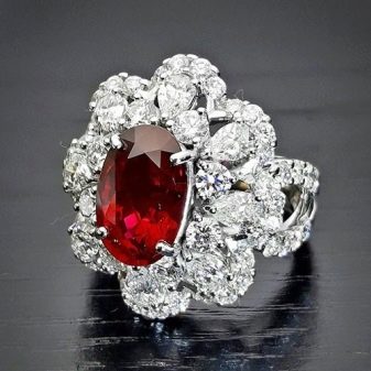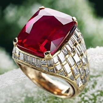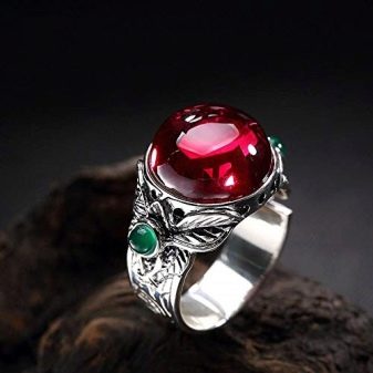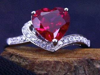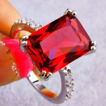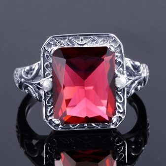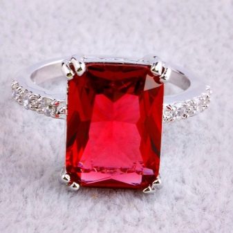 Rubine in Silber sehen wunderschön aus. Edelmetall verbessert die Eigenschaften des Edelsteins. Es wird empfohlen, anspruchsvollen Schmuck mit Rubinen zu kaufen. Massive Ringe sehen schlimmer aus.