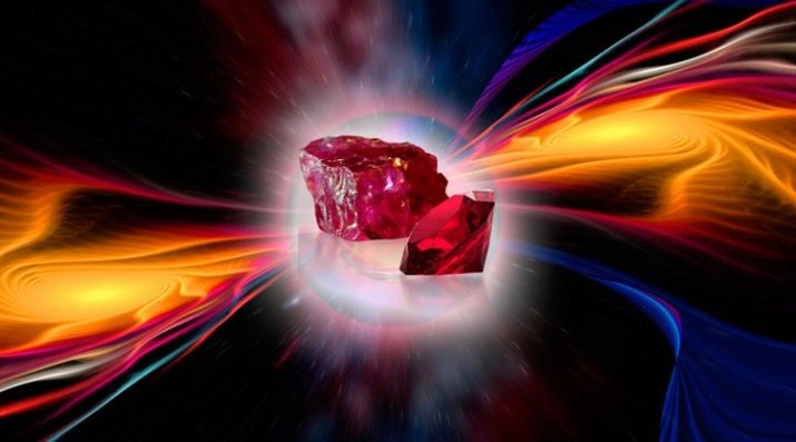Rubin gehört zur Kategorie der magmatischen Gesteine. Die chemische Formel von Korund lautet Al2O3. Der Farbumfang variiert normalerweise von rosa bis zu einem blutroten Farbton, der sich in der Mineralstruktur aufgrund des hohen Gehalts an Verunreinigungen von Eisen und Chromoxid manifestiert. Auf der Mohs-Skala beträgt der Edelsteinhärtekoeffizient 9 Punkte, weshalb der Rubin Diamanten nicht viel unterlegen ist. Seine Dichte beträgt 4-4,05 g / cm³. Korund gehört zur Schmuckklasse I. Nach dem Schneiden und Schleifen wird der Stein vollständig transparent.