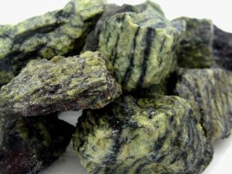 Serpentin oder Serpentin Es wurde so wegen seiner charakteristischen Färbung benannt: Auf der Oberfläche eines Steins, dessen Farbe von gelbgrün bis dunkel variiert, sind fast schwarze Flecken sichtbar, die mit anderen Mineralien unterschiedlicher Farben durchsetzt sind, die Schlangenschuppen ähneln. Die gleichmäßig gefärbte, manchmal durchscheinende Sorte der Spule wird als edles Serpentin bezeichnet und als Rohstoff für die Herstellung verschiedener Handwerke verwendet.