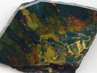 Jasper - Halbedelstein-Ziermineral mit sedimentärem Ursprung. Dieser Stein (auf Griechisch „gesprenkelter Stein“) erhielt seinen Namen aufgrund der vielen verschiedenen Farben mit Imprägnierungen, die eine ungleichmäßige Farbe ergeben. Massive Jaspissteine in der Natur sind eine Seltenheit. Grüner Jaspis kann Handelsnamen haben wie: