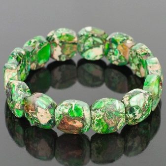 Produkte aus grünen Mineralien sind für Menschen am attraktivsten, da die Farbe für die Augen angenehm ist und vom Nervensystem ruhig wahrgenommen wird, ohne Reizungen zu verursachen. Eine Person, die einen Schmuck mit einem grünen Kieselstein trägt, wird von anderen als reich und großzügig empfunden, ähnlich wie Mutter Erde. Die grüne Farbe der Steine wirkt auch beruhigend auf das Herz-Kreislauf-System und lindert psychischen Stress.