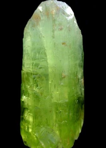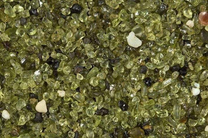 Hawaii, auch eine der kostbarsten Olivinsorten, Ein Eingeborener der Lava der Vulkane der Hawaii-Inseln hat im Gegensatz zu Chrysolith eine hellgrüne Farbe und ist nicht so weit verbreitet wie sein Verwandter. Olivin selbst ist zu zerbrechlich und kommt häufiger in Form von Sand vor. Seine Verbreitung ist so groß, dass es sogar in der Zusammensetzung des Mondbodens zu finden ist.