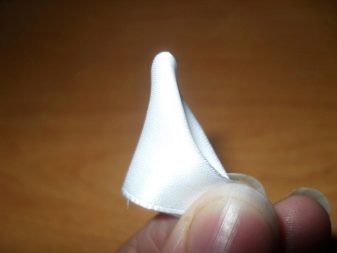Das Hauptmerkmal der Kanzashi-Technik ist die Herstellung von Blütenblättern und Blütenblättern. Blütenblätter bilden eine ovale, runde oder scharfe Form.