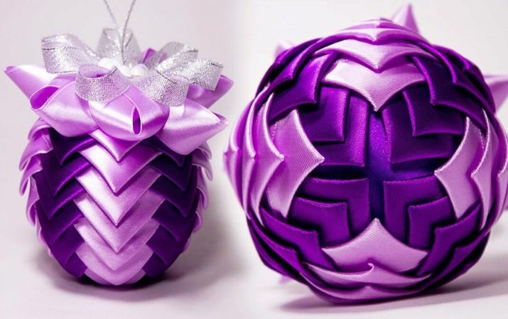 - Bänder aus Satin, Rayon, Nylon. Normalerweise funkelt an einem Weihnachtsbaum alles. Glänzende Weihnachtskugeln entstehen aus Satinbändern mit Lurex und Brokat.