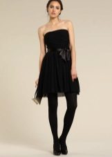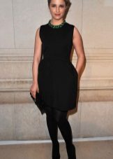 Die fleischfarbenen oder rauchigen Farben von Strumpfhosen eignen sich besonders für ein offenes Outfit, um dem Bild Leichtigkeit zu verleihen. Dunkle Strumpfhosen mit einem solchen Kleid sollten tagsüber nicht getragen werden, sie tragen zur Feierlichkeit bei - dies ist also bereits ein Outfit für den festlichen Abend. Um ein Kleid mit langen Ärmeln aufzuwärmen, sind dichte dunkle oder helle Strumpfhosen gut.