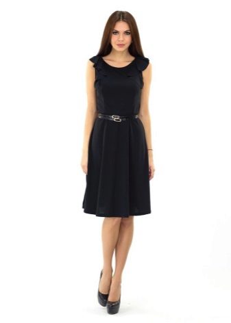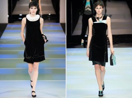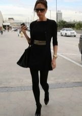 Und wenn Sie es erwarten romantisches Date oder ins Theater gehen - Ein kleines schwarzes Kleid aus strukturiertem Stoff mit Muster, ein schmaler Lackgürtel, Strumpfhosen und klassische schwarze Schuhe werden ebenfalls Abhilfe schaffen - die Einfachheit der Jugend. Oder ein trotzigeres Outfit in einem eng anliegenden Kleid mit nackten Schultern und glänzenden Schuhen.