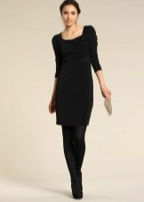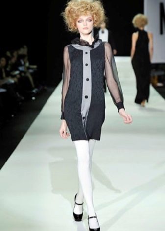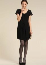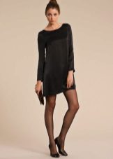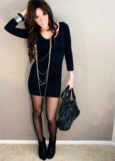 Neben Schwarz sind auch andere dunkle Farben möglich - Dunkelgrau, Graphit. Dünne matte Strumpfhosen eignen sich perfekt für alltägliche dünne Kleider mit einem einfachen Schnitt aus Strickwaren. Dicke schwarze Strumpfhosen in dunklem oder graphitfarbenem Farbton ergänzen harmonisch ein warmes Strickkleid. Mit Mustern verzierte Gegenstände eignen sich auch gut für dichten Stoff.