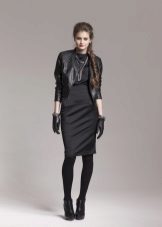 Dicke schwarze Strumpfhosen schmücken auch das Bild einer Geschäftsfrau, und eine feste schwarze Farbe kann mit einem weißen Kragen, Manschetten oder einer eleganten Jacke in Dunkelblau verdünnt werden.