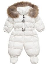 Der weiße Overall sieht zwar hell aus, aber seine Praktikabilität ist auf Null reduziert. Ausnahmen sind Modelle für die Kleinsten, die meist auf der Straße schlafen. Sie werden dieser unschuldigen Farbe ausgesetzt sein und ihre Mutter muss ihre Overalls nicht oft waschen, was die Eigenschaften des Füllstoffs nicht optimal beeinflusst.