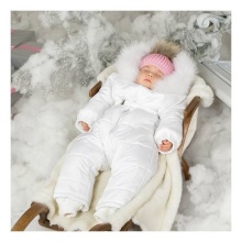 Zusammen mit Gänsedaunen ist Schaffell oder Wolle. Solche Materialien verursachen keine Allergien, erwärmen sich auch bei minus 25 gut, sind langlebig und nicht anspruchsvoll zu waschen (außer bei hohen Temperaturen, die zu einer Verringerung der Größe des Produkts führen können). Der Nachteil ist das hohe Gewicht des Schaffellprodukts, so dass diese Overalls oft von sehr kleinen Kindern gekauft werden.