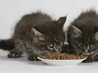 Trockenfutter besteht aus kleinen Stücken von dichter und ziemlich trockener Konsistenz. Der Wassergehalt darin beträgt in der Regel 6% nicht. Das Training von Kätzchen für diese Art von ausländischen Direktinvestitionen sollte nicht älter als 2 Monate sein. Es ist besser, wenn das Haustier das Alter von 4 oder 5 Monaten erreicht.