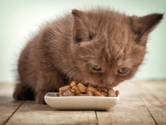 Um das empfindliche Zahnfleisch eines pelzigen kleinen Freundes nicht zu verletzen und Verdauungsprobleme zu minimieren, ist es besser, das Futter vor dem Servieren einzuweichen. Um dies zu tun, müssen Sie das Granulat nur mit einer kleinen Menge Wasser füllen und 10 Minuten lang quellen lassen. Anschließend müssen Sie es in eine Haustierschüssel geben. Wenn ein Kätzchen 8 Monate alt ist, kann Trockenfutter ohne Einweichen gegeben werden.