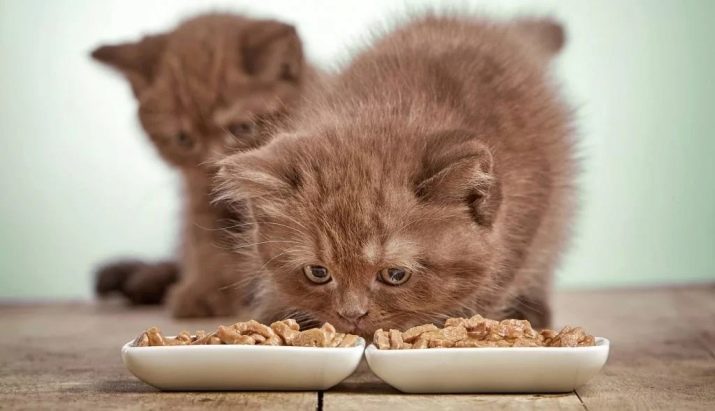 Der Prozentsatz an Wasser in der feuchten Art von Futter liegt nahe bei 80, so dass die Kätzchen keine zusätzliche Flüssigkeit benötigen oder die Menge minimal sein sollte. Sehr oft essen Kinder hastig und Lebensmittelstücke in der Mundhöhle haben einfach keine Zeit, sich einer Speichelbehandlung zu unterziehen, was natürlich die Qualität der Verdauung beeinträchtigt. Es ist unwahrscheinlich, dass eine unzureichende Zeit für die Verarbeitung kleiner Stücke in Gelee oder Brühe die empfindliche Magenschleimhaut schädigt, aber trockenes großes Granulat kann sie verletzen.