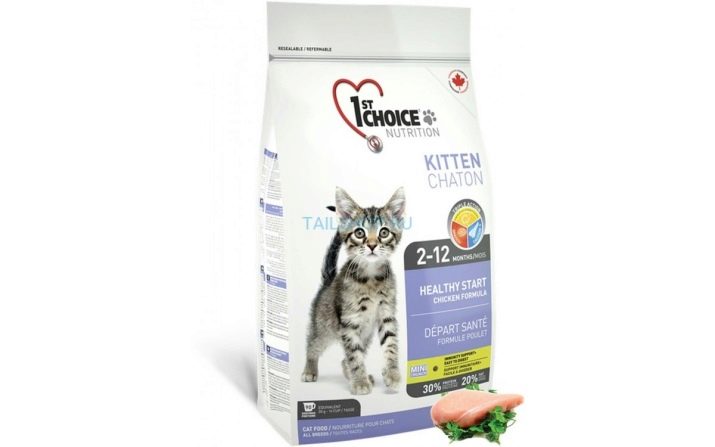 Einer der guten in dieser Linie ist Feed von der kanadischen Firma 1st Choice. Im Futter sind neben tierischen Proteinen auch pflanzliche Proteine vorhanden, die einen größeren als den erforderlichen Anteil einnehmen (etwa 30%). Der Fleischanteil im Proteinanteil ist nicht sehr groß und liegt innerhalb von 17%. Fettsäuren sind in Hühner- und Fischölen enthalten, und der Getreidekomplex ist eine Quelle für Kohlenhydrate. Die Zusammensetzung enthält keine künstlichen Farbstoffe und Vitamin E (Tocopherol) wird als Konservierungsmittel verwendet.