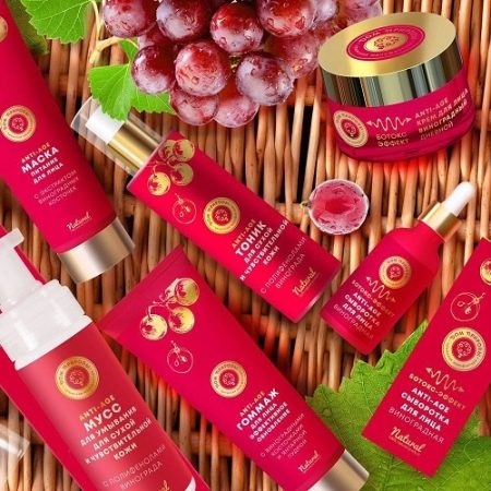 - AntiAge-Linie mit Traubenkernöl verlangsamt sich die Hautalterung und synthetisiert die Produktion seines eigenen Proteins. Es enthält einen vollständigen Satz von Pflegeprodukten, die für eine breite Palette von Verfahren benötigt werden.