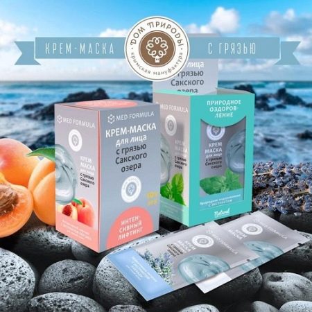 - Schlammmasken mit Schlamm aus dem Saki-See und weißblauem Ton, Reinigen Sie die Epidermis intensiv und geben Sie der Haut ein frisches Aussehen. Nützliche Makrozellen und Mineralsalze aus Ton nähren es mit Mineralien. Beim Auftragen einer Maske wird die Durchblutung verbessert. Dies stimuliert die Zellwiederherstellung.