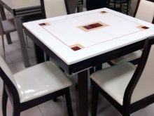 Die Standardgröße des Tisches, um den eine kleine Familie passen kann, beträgt 60 x 80 cm. Es gibt kompaktere Modelle - 50 x 50 und 60 x 60 cm.