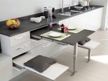 Es ist ziemlich schwierig, eine kleine Küche zu arrangieren, da Sie auf jeden Fall alles hineinstecken müssen, was Sie brauchen, und gleichzeitig das Arrangement so bequem wie möglich gestalten müssen. Das Schwierigste bei großen Gegenständen, insbesondere bei einem Tisch. In diesem Fall ist es besser, auf Faltmodelle zu achten, mit denen Sie auch einen kleinen Küchenraum problemlos organisieren können.